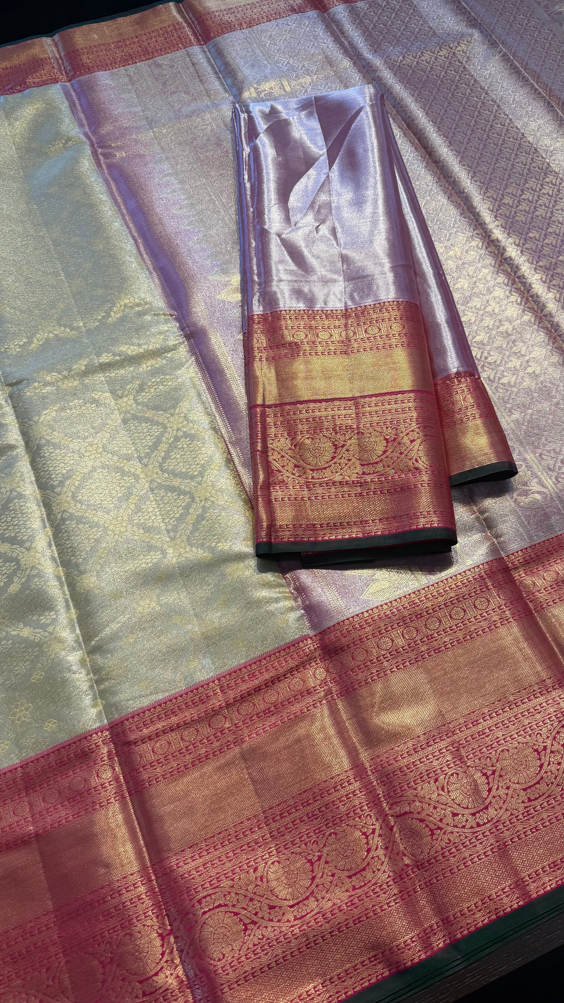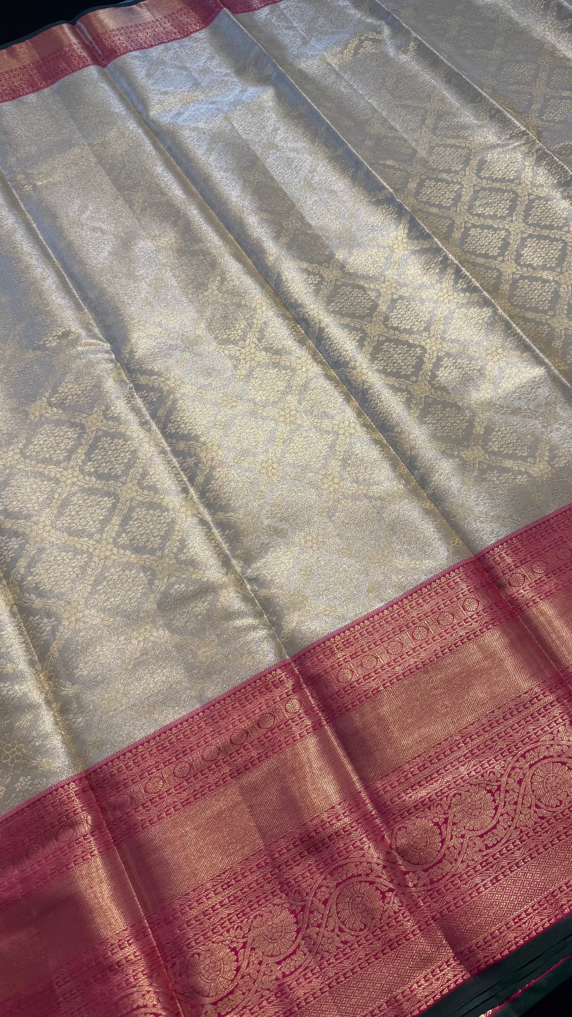 CHAMPAGNE WITH CONTRAST PINK SEMI SILK KANCHIPURAM SILK SAREE (SSKS62)