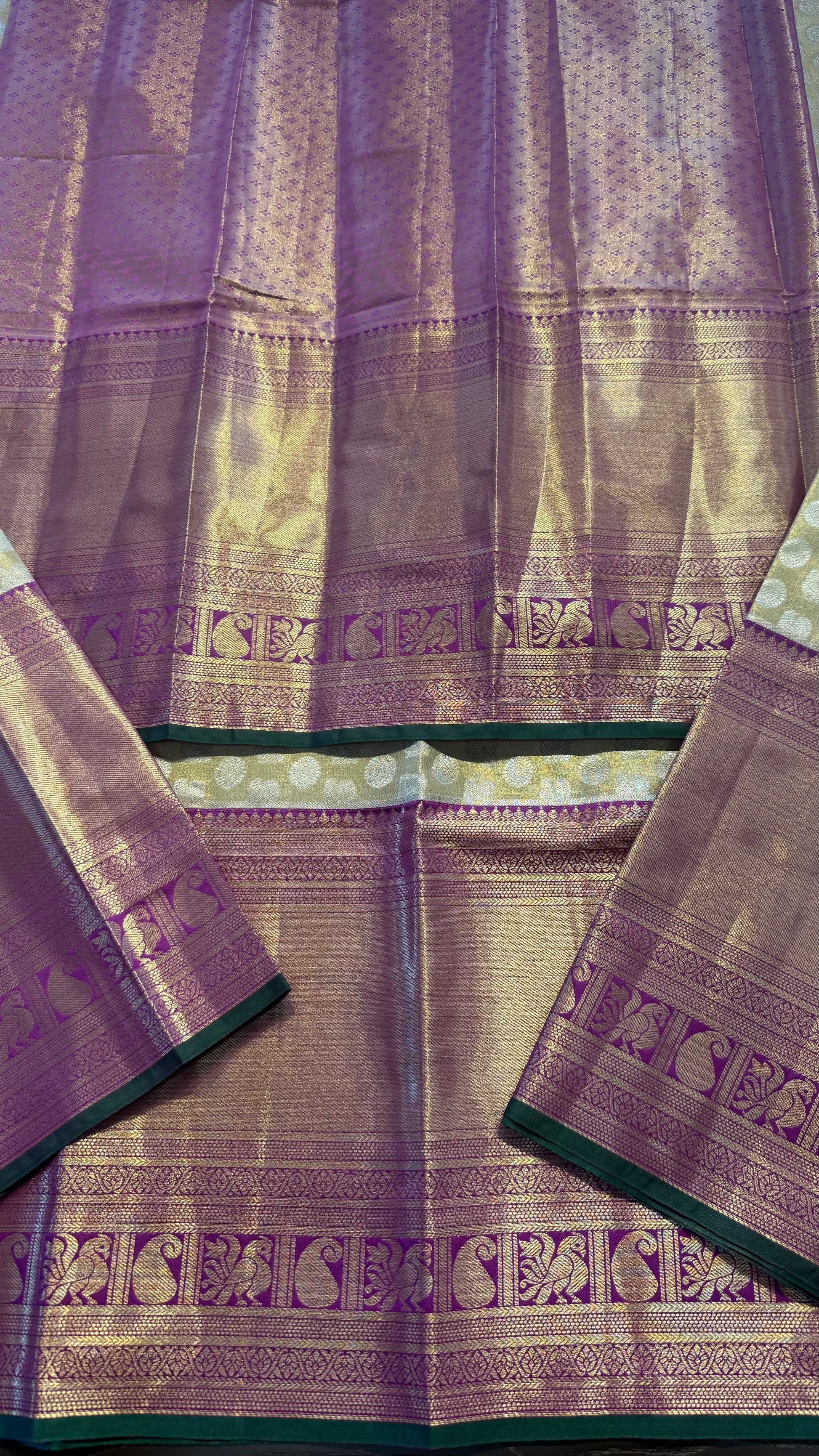 CREAM WITH CONTRAST PURPLE SEMI SILK KANCHIPURAM SILK SAREE (SSKS68)