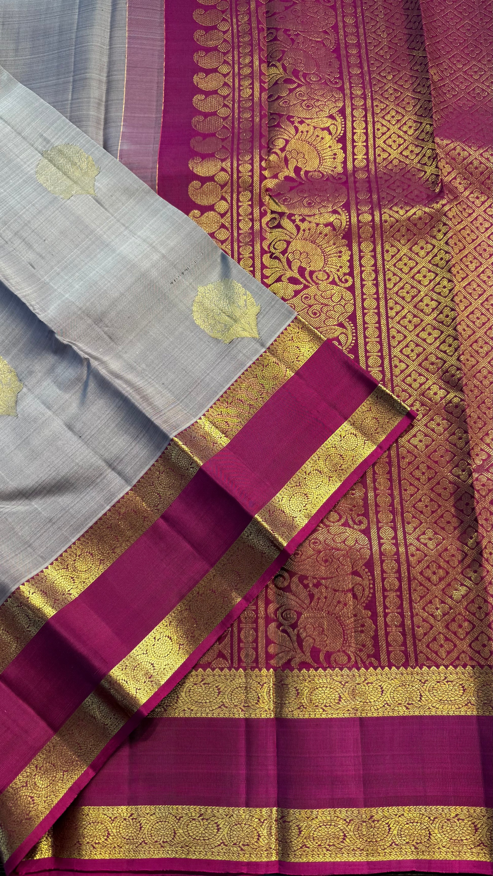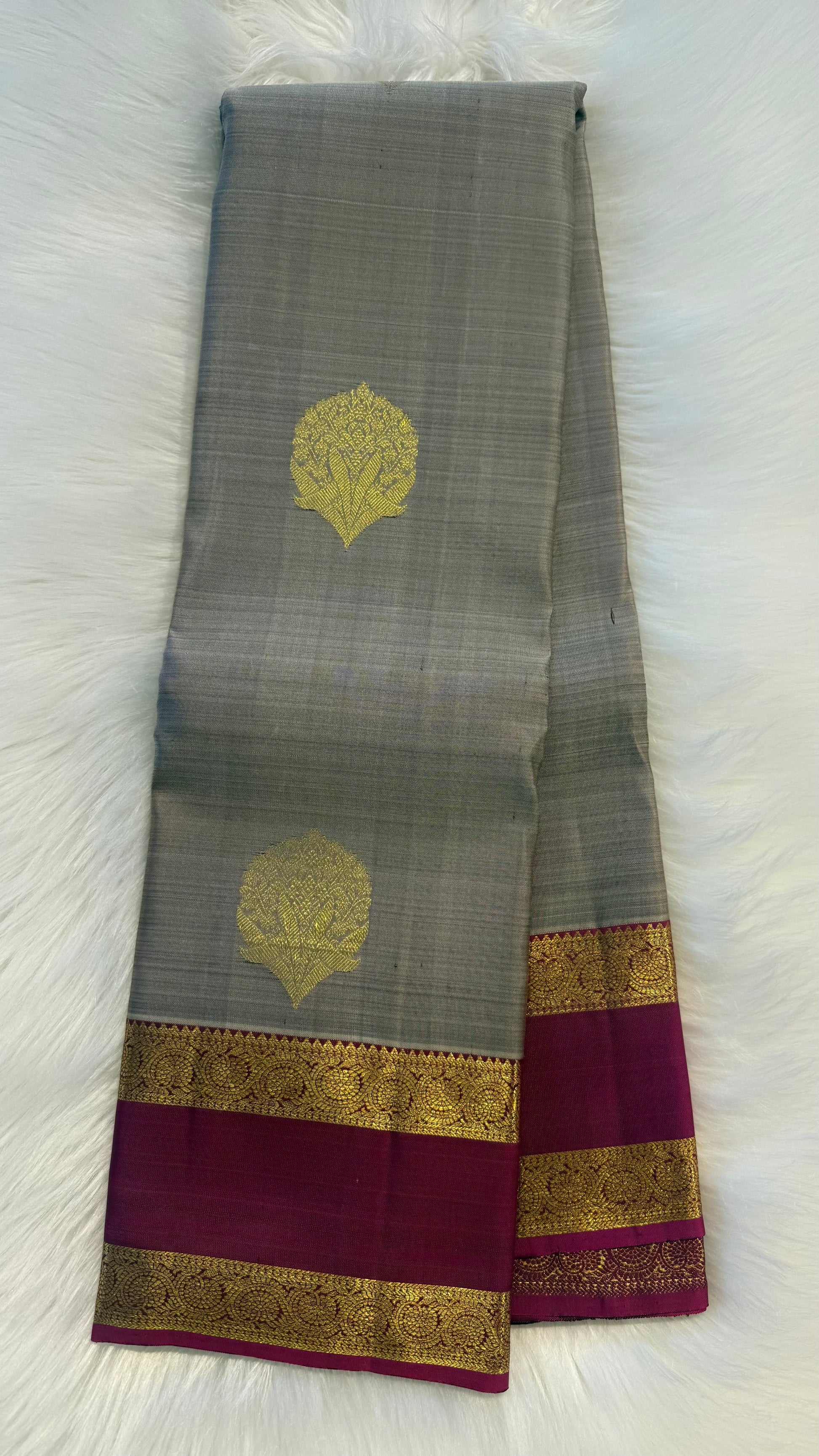 DUAL TONE TAUPRE GREY WITH CONTRAST MAGENTA GOLD ZARI HANDLOOM KANCHIPURAM SILK SAREE (KSS354)