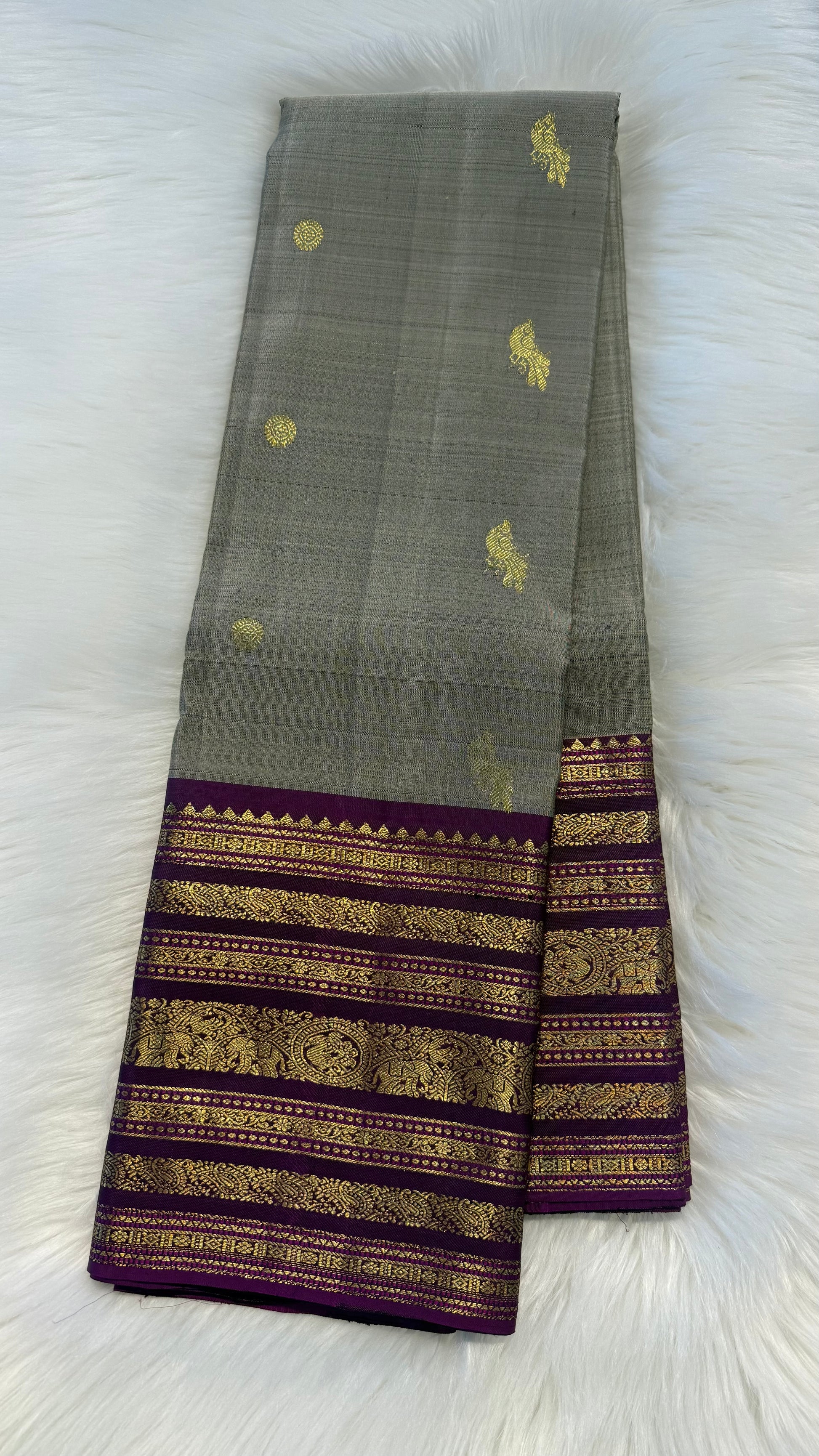 DUAL TONE TAUPRE GREY WITH CONTRAST PURPLE GOLD ZARI HANDLOOM KANICHIPURAM SILK SAREE (KSS211)