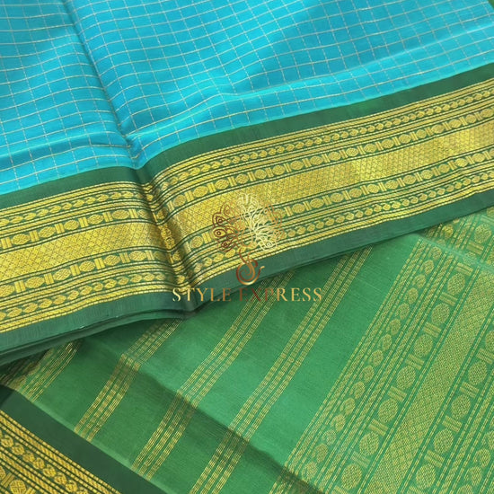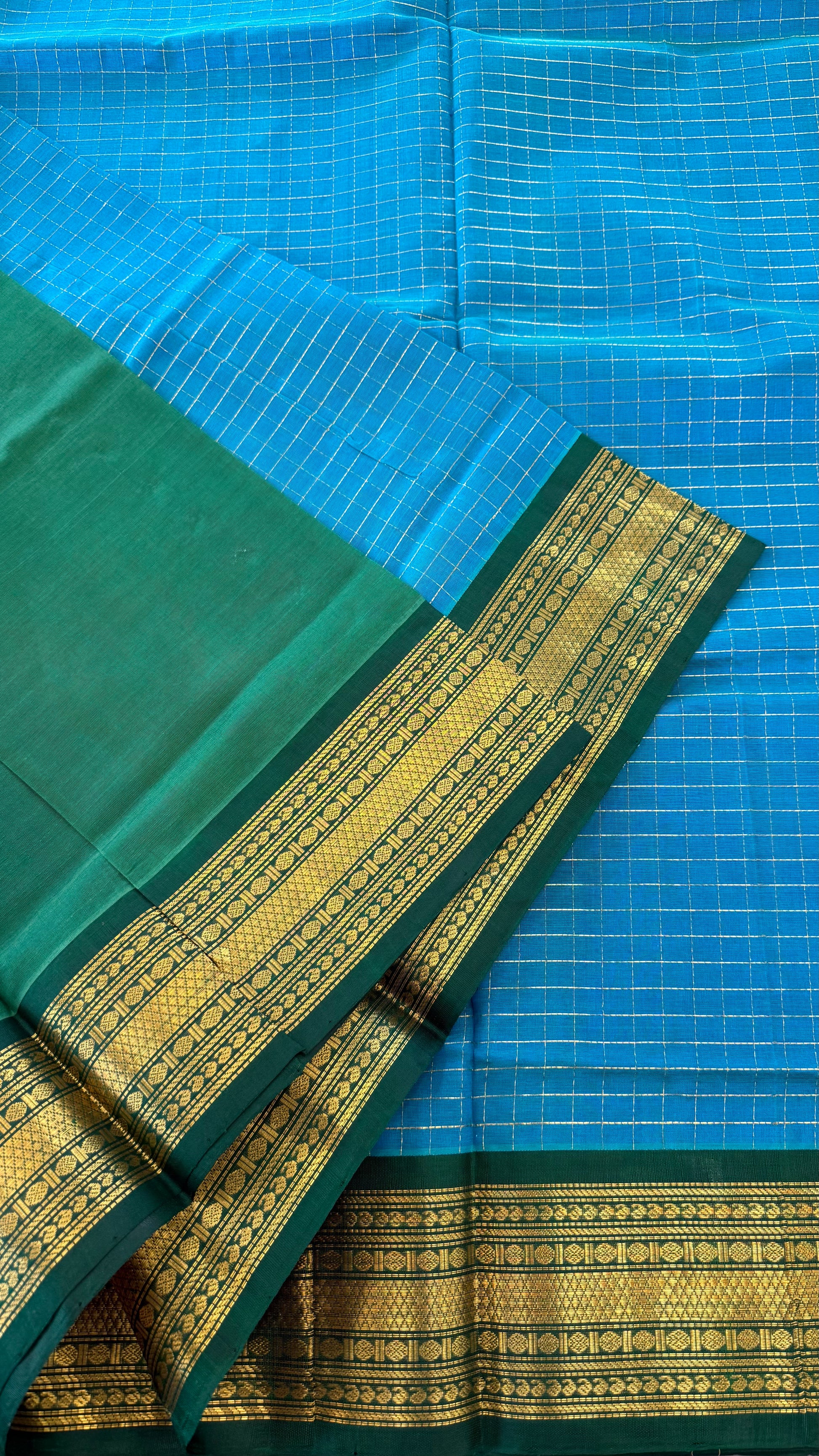 DUAL TONE TURQUOISE BLUE AND GREEN HANDLOOM KANCHIPURAM SILK COTTON (KSC37)