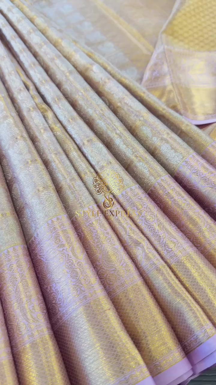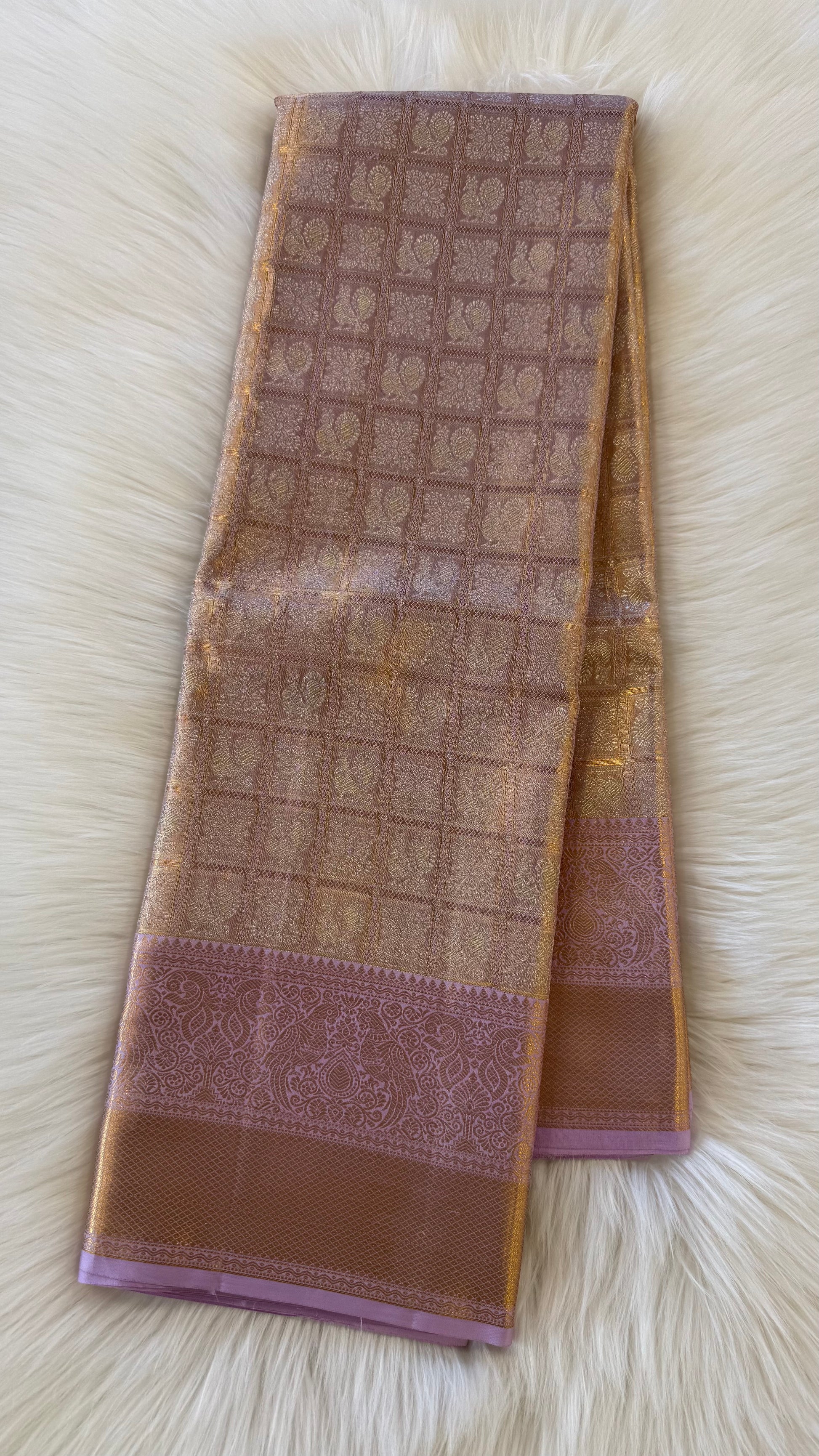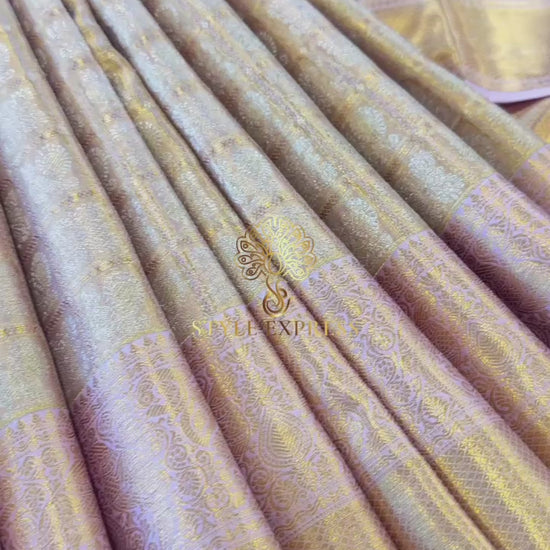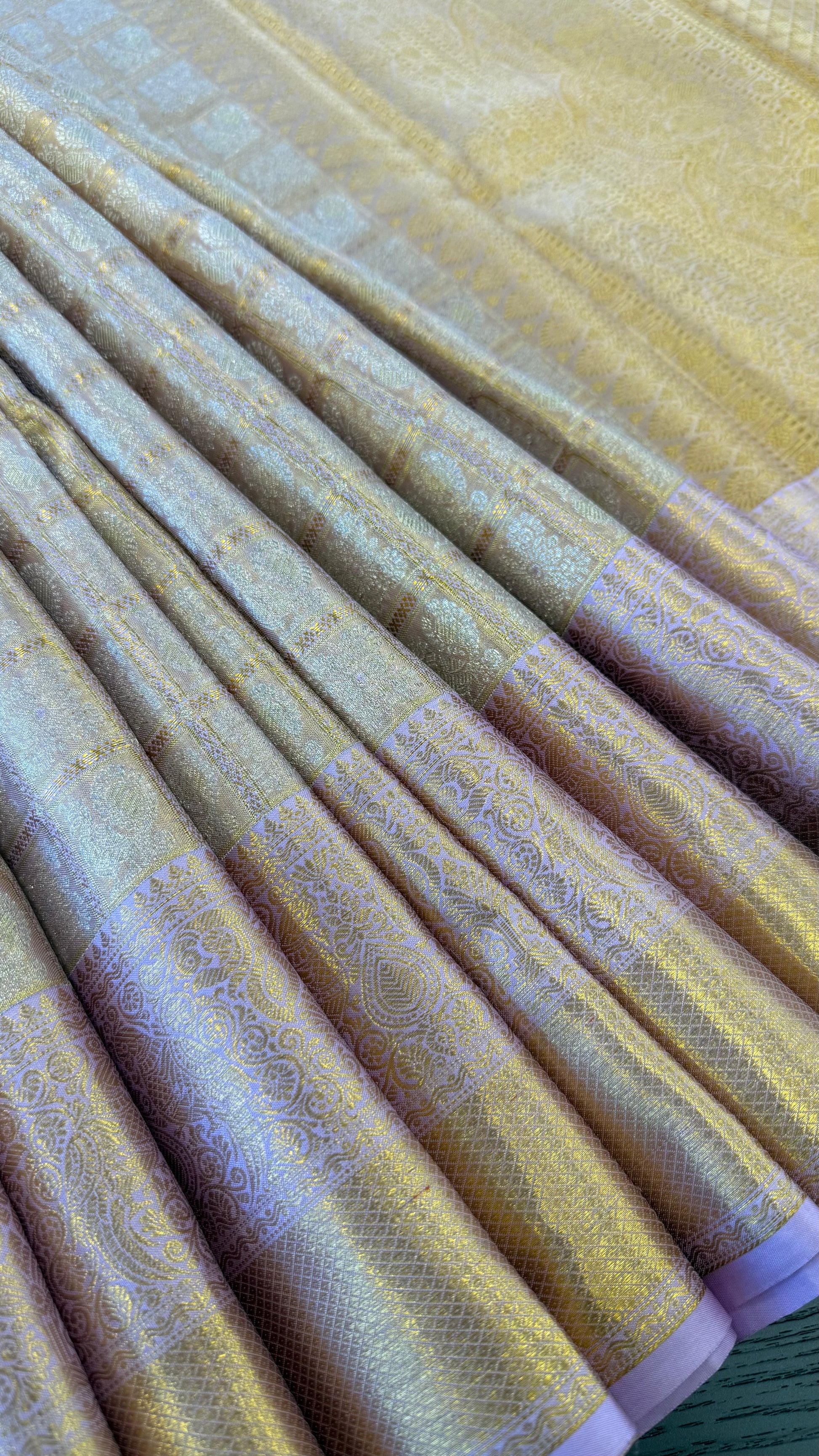 GOLD WITH CONTRAST LAVENDER GOLD ZARI HANDLOOM KANICHIPURAM SILK SAREE (KSS110)