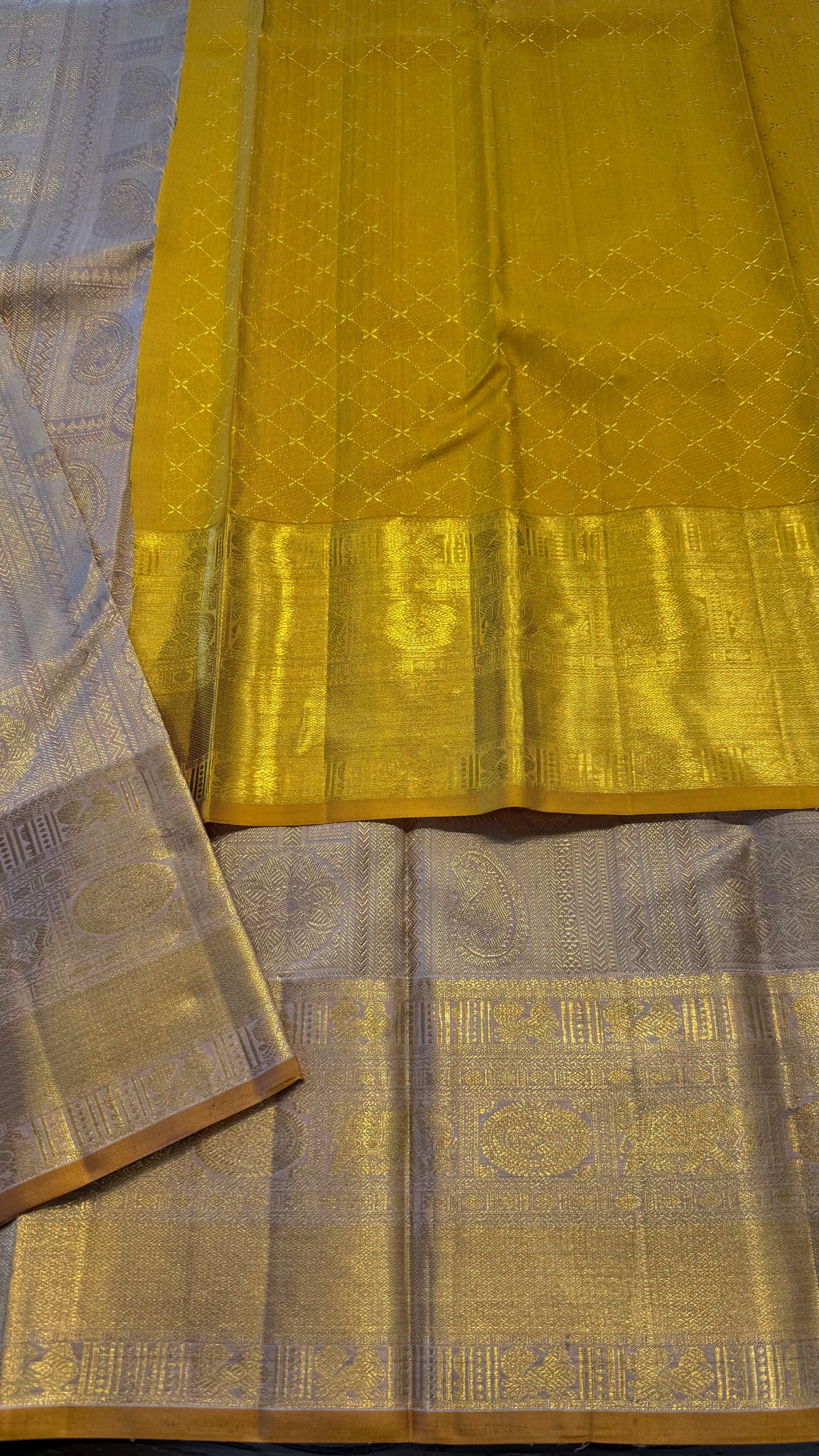 GOLDEN CASHEW FULL ZARI HANDLOOM KANCHIPURAM SILK SAREE (KSS 487)