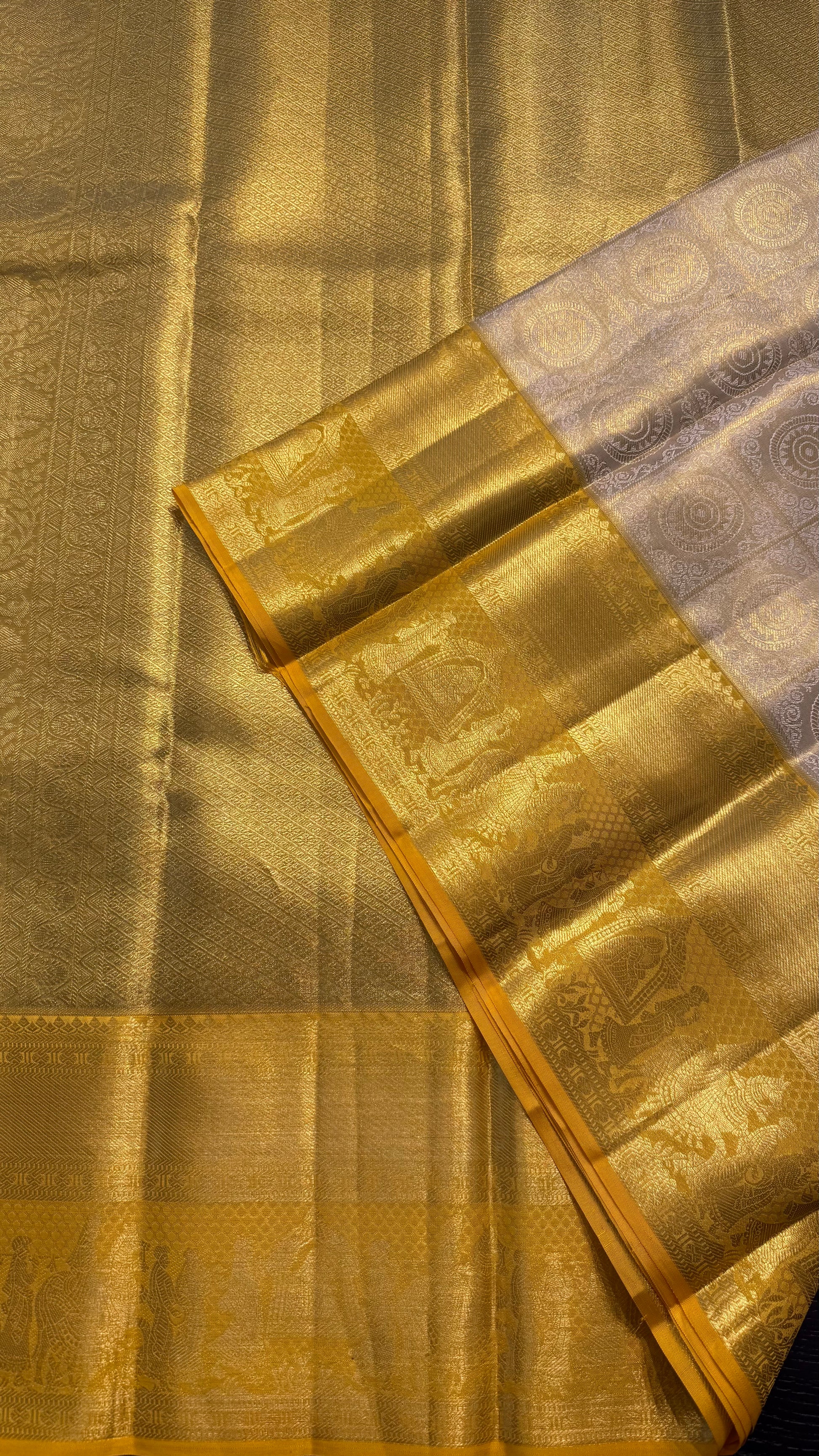 GOLDEN WITH CONTRAST MUSTARD FULL ZARI HANDLOOM KANCHIPURAM SILK SAREE (KSS443)