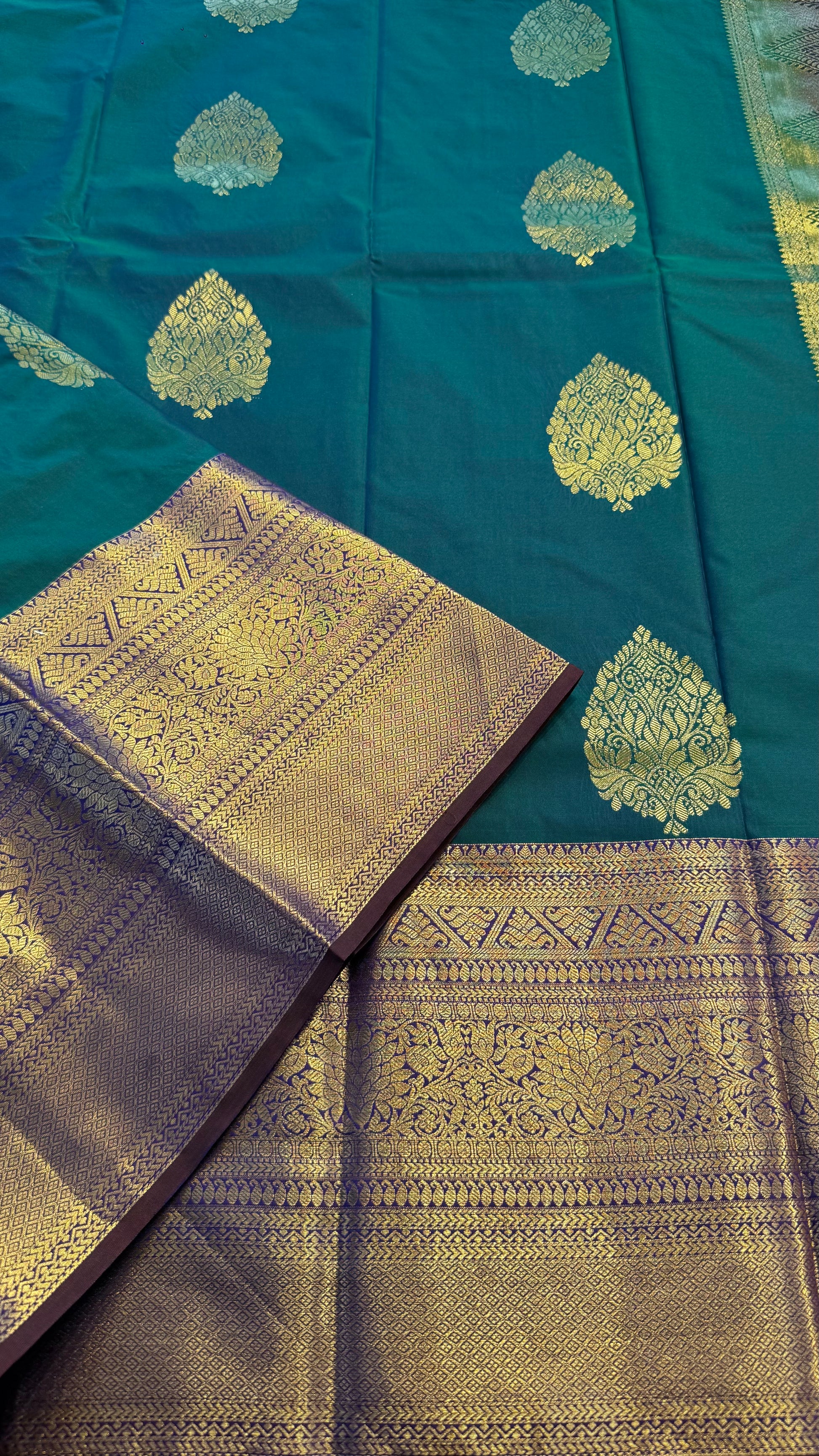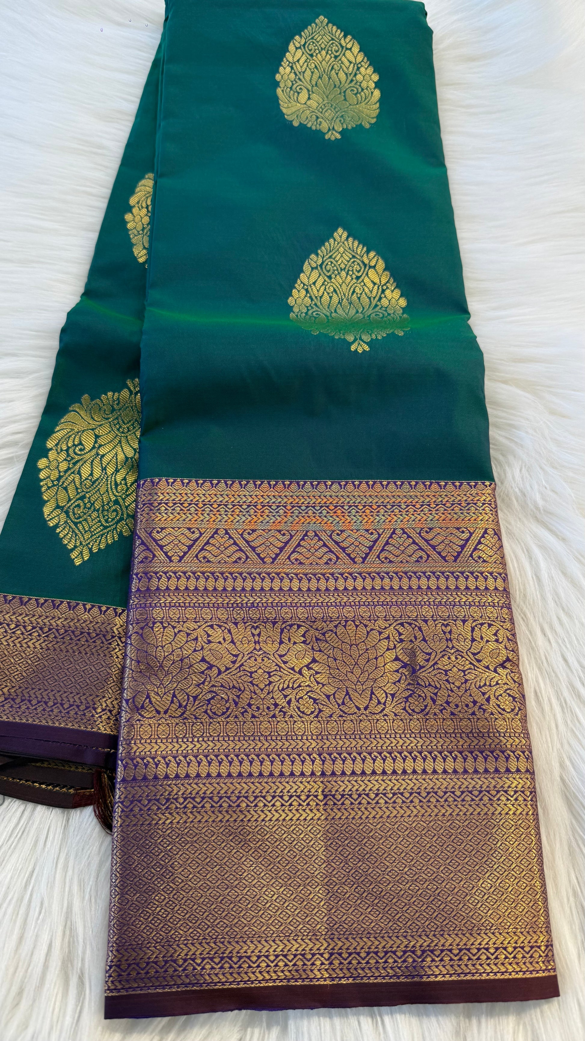 PEACOCK GREEN WITH CONTRAST PURPLE SILK KANICHIPURAM SILK SAREE (SSKS50)