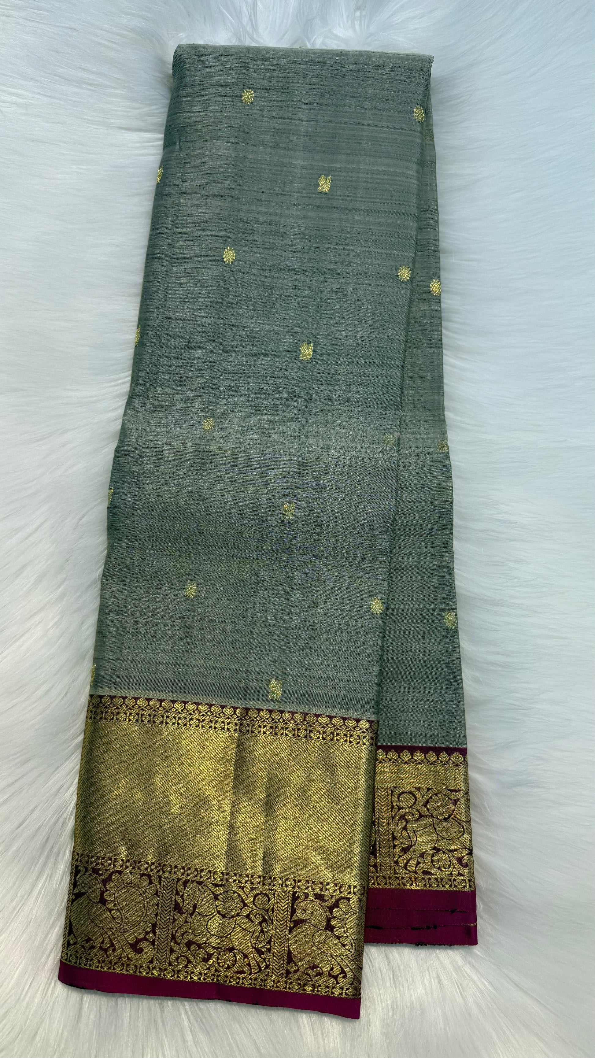 GREY WITH CONTRAST PINK GOLD ZARI HANDLOOM KANCHIPURAM SILK SAREE (KSS335)