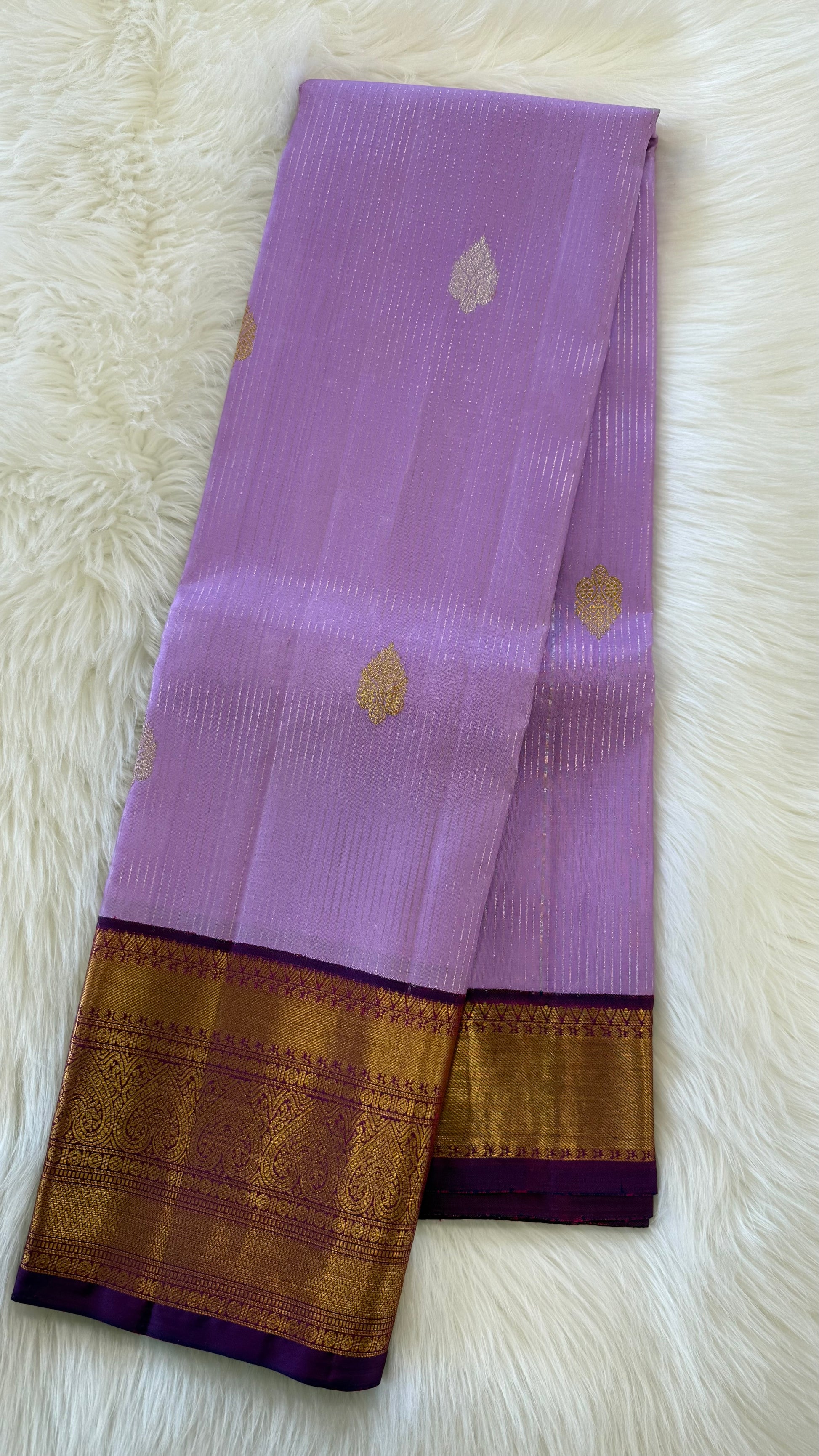 LAVENDER WITH CONTRAST VADAMALLI PURPLE GOLD ZARI HANDLOOM KANICHIPURAM SILK SAREE (KSS98)