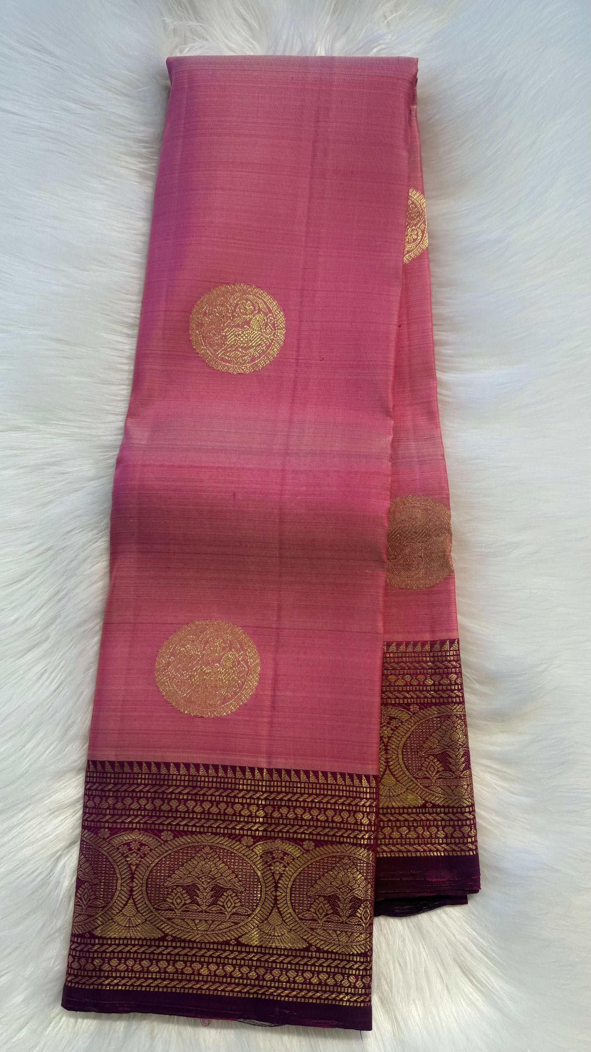 LIGHT PASTEL PINK WITH CONTRAST VADAMALLI PURPLE KANCHIPURAM HANDLOOM SILK SAREE (KSS372)