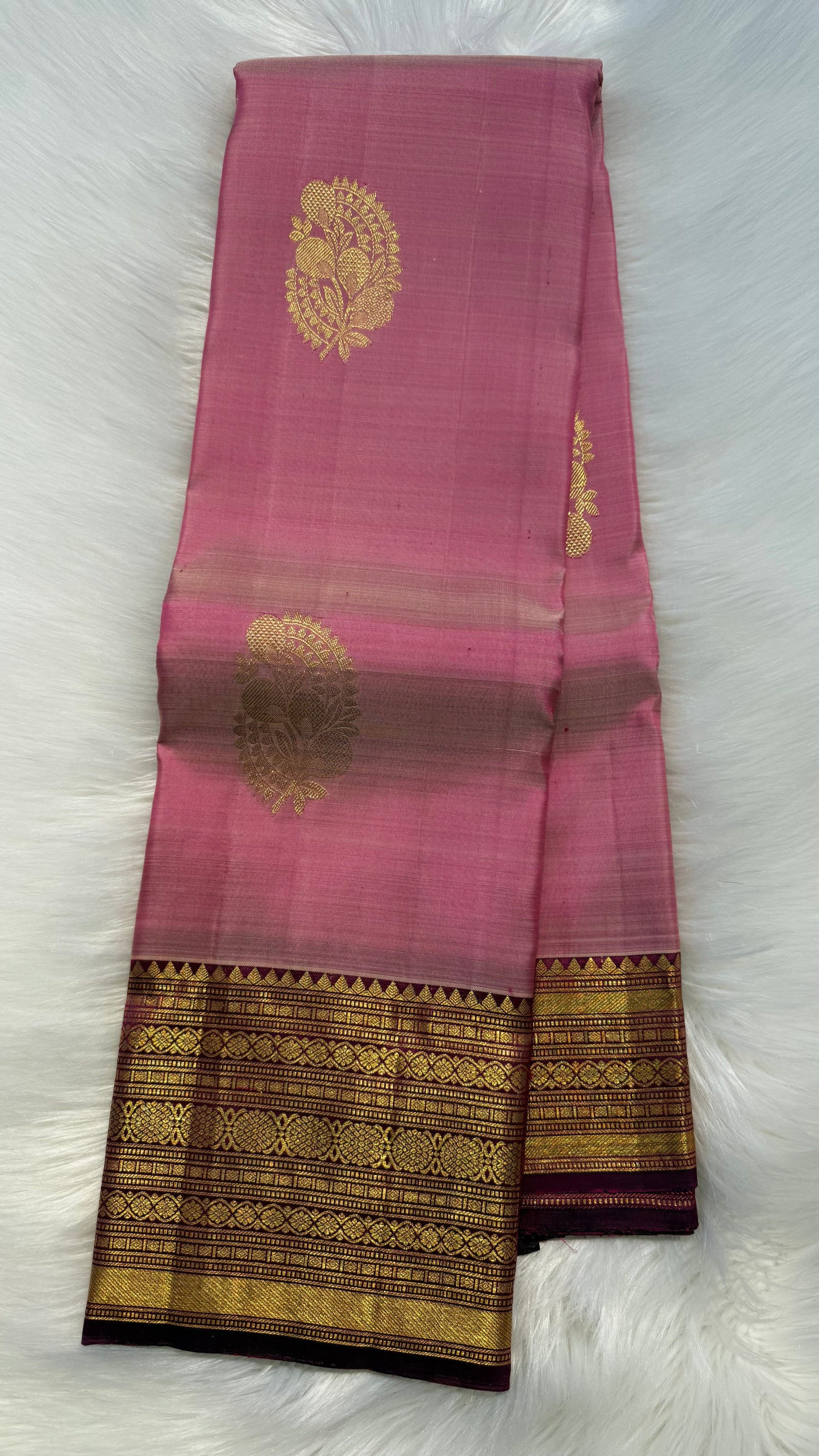 LIGHT PASTEL PINK WITH CONTRAST VADAMALLI PURPLE KANCHIPURAM HANDLOOM SILK SAREE (KSS402)