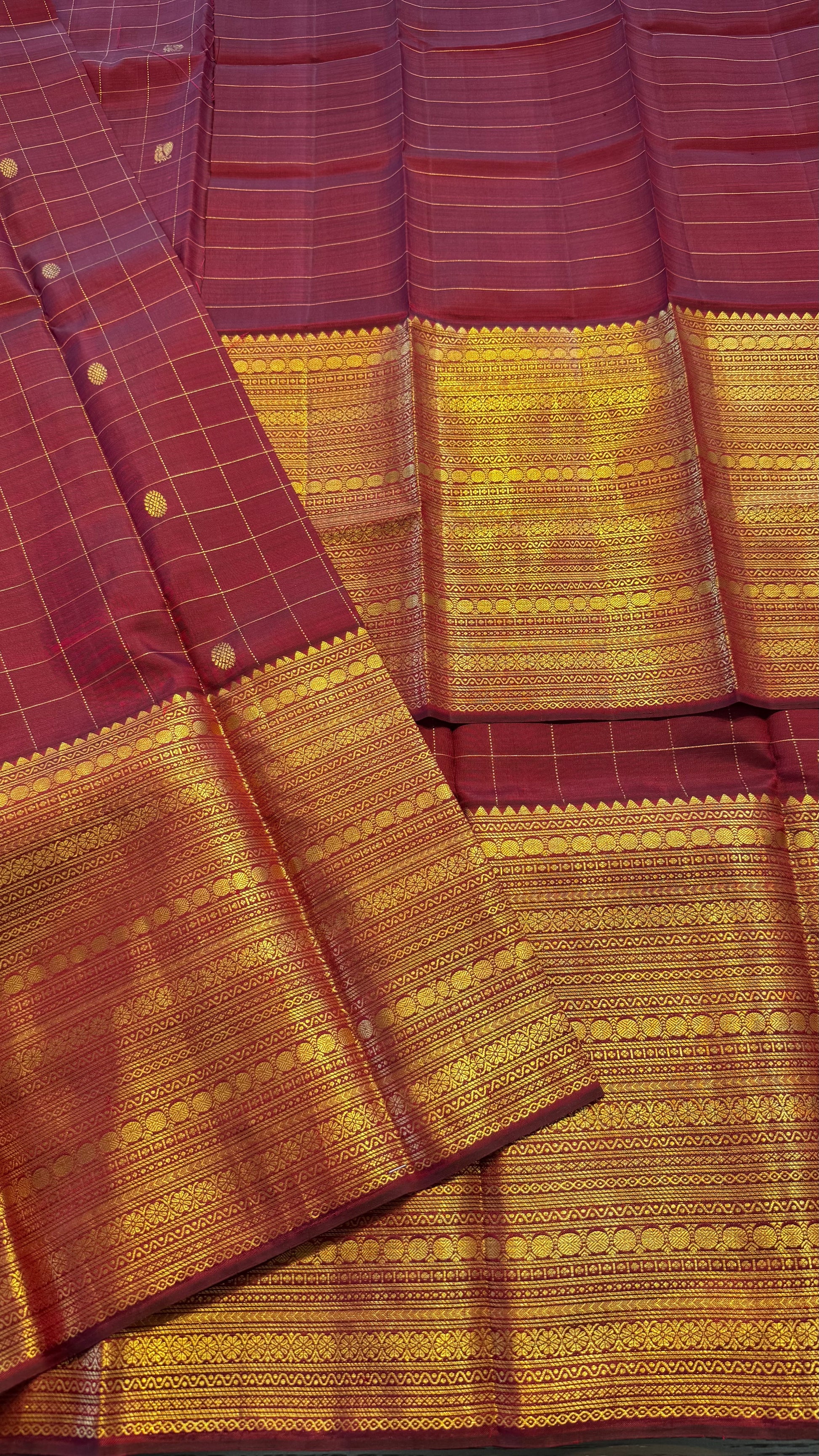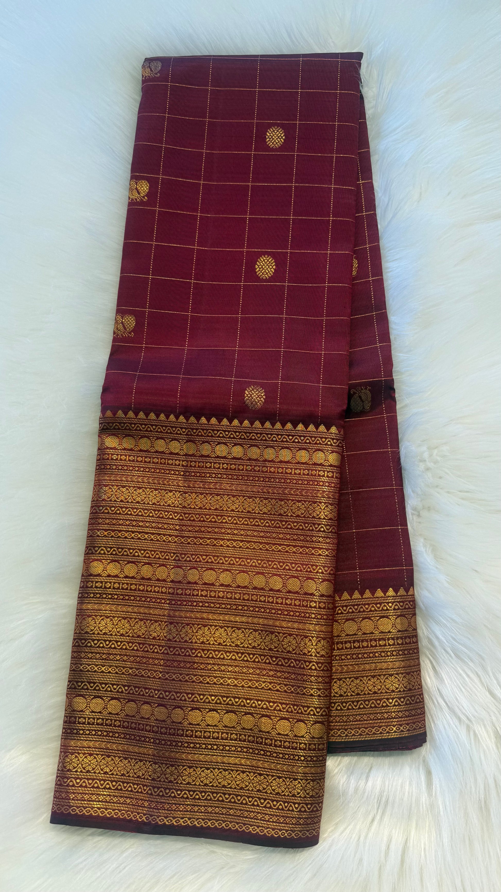 MAROON CHECKED GOLD ZARI HANDLOOM KANICHIPURAM SILK SAREE (KSS 503)