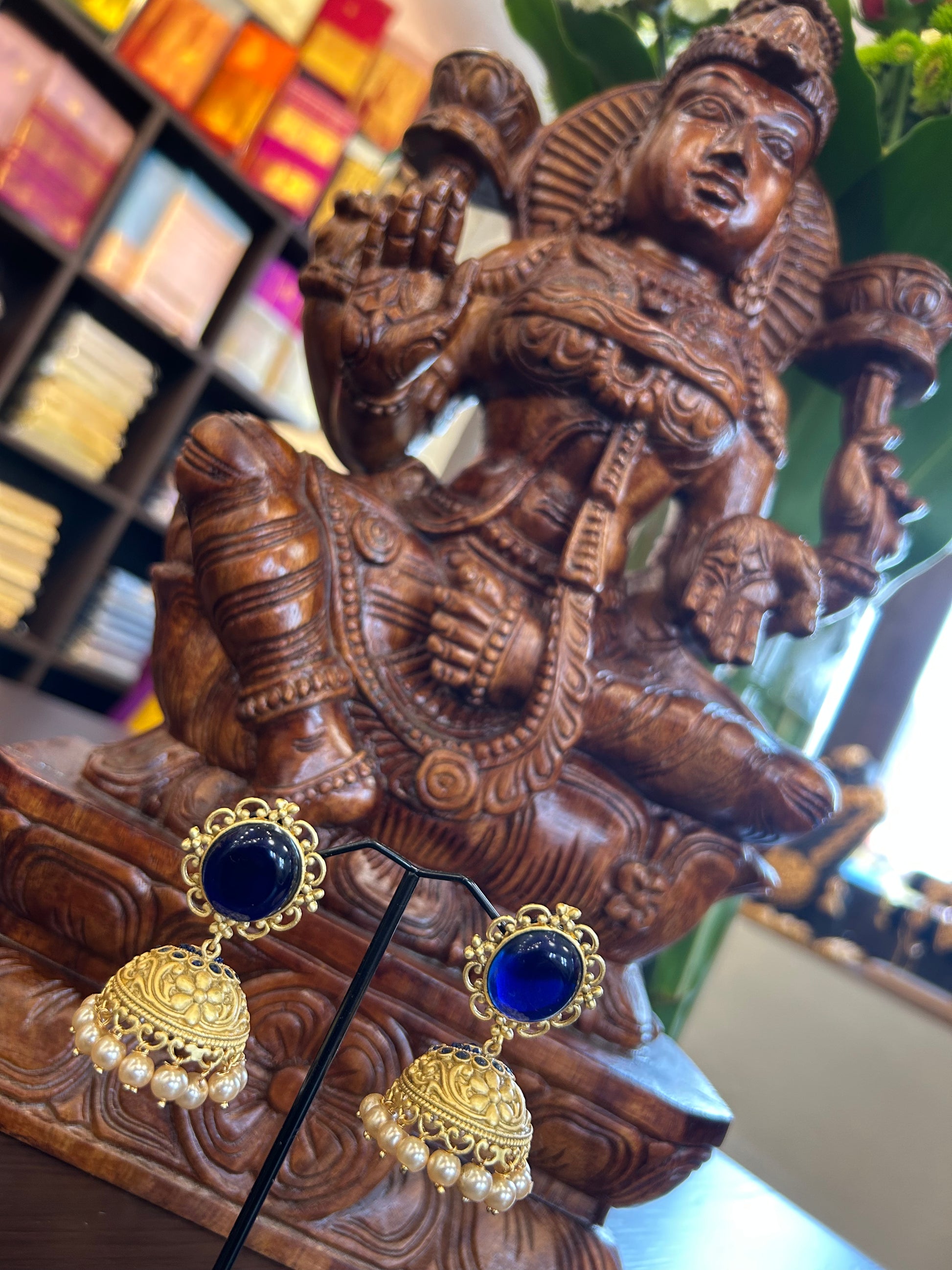 Matte Finish Dark Blue Designer Jhumka
