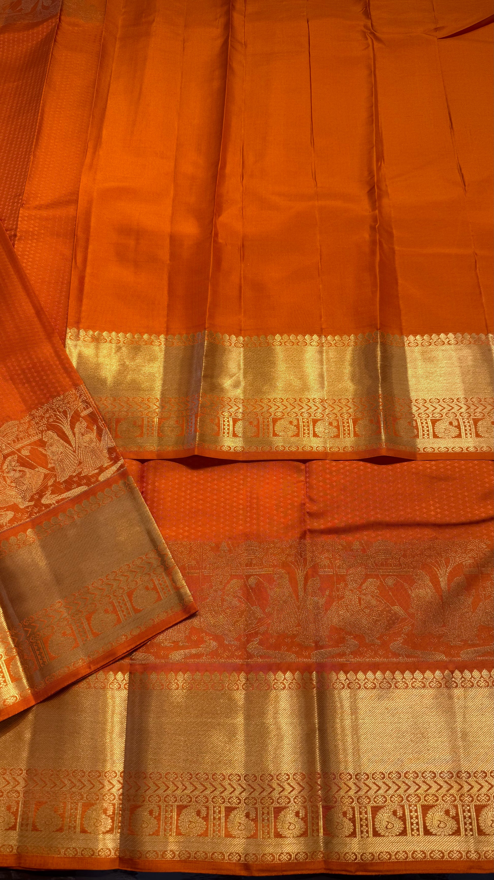 ORANGE GOLD ZARI HANDLOOM KANCHIPURAM SILK SAREE (KSS452)