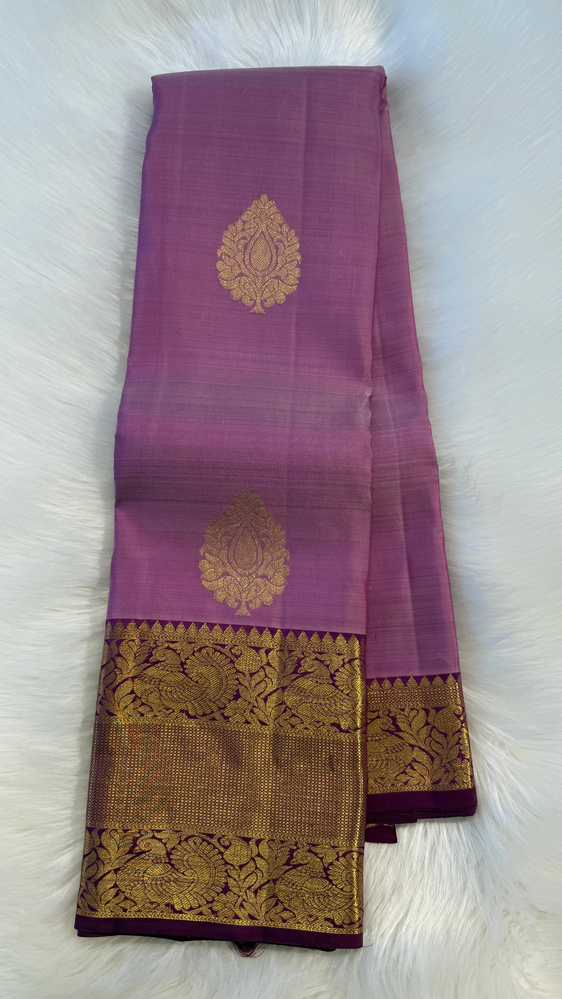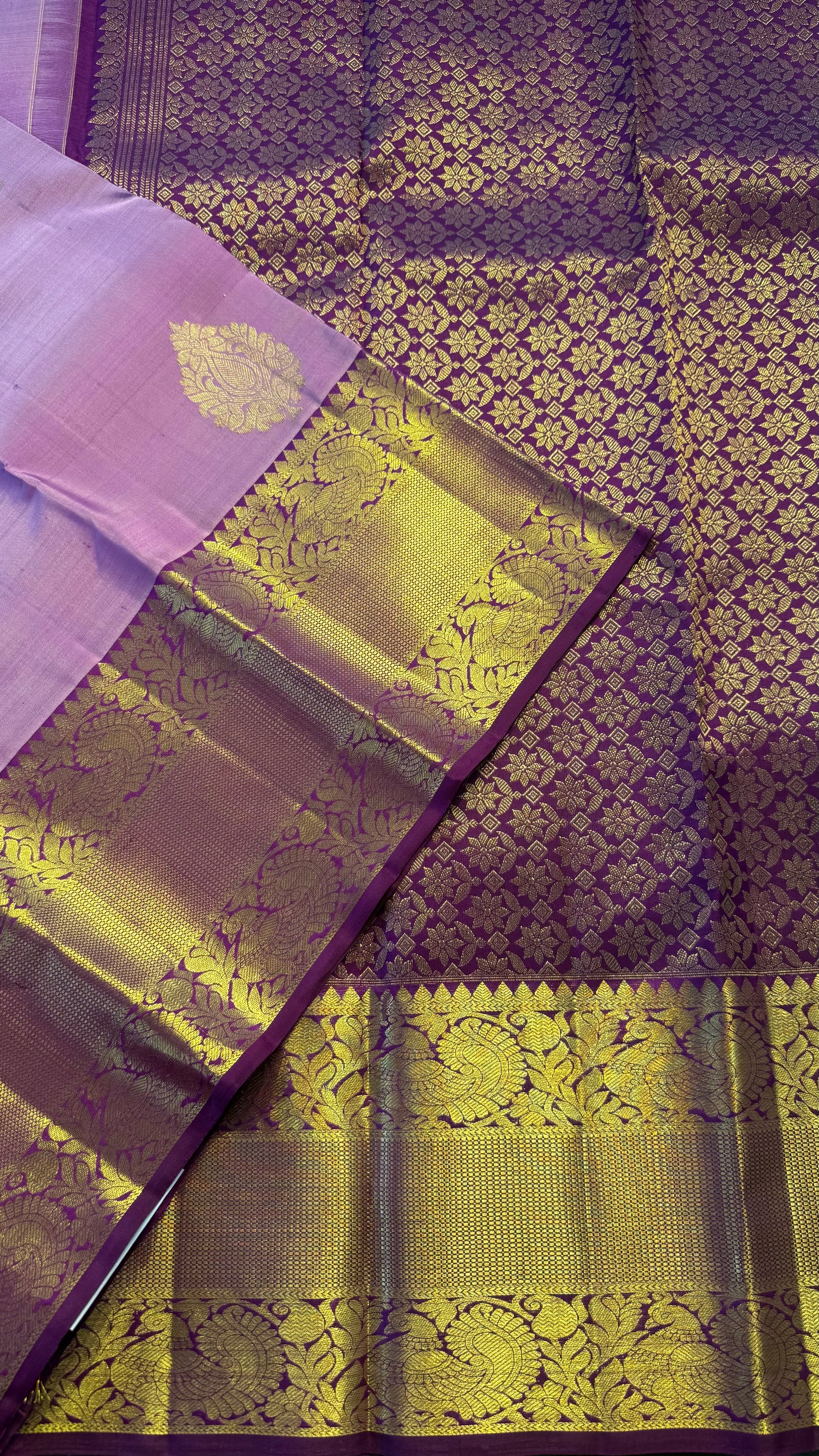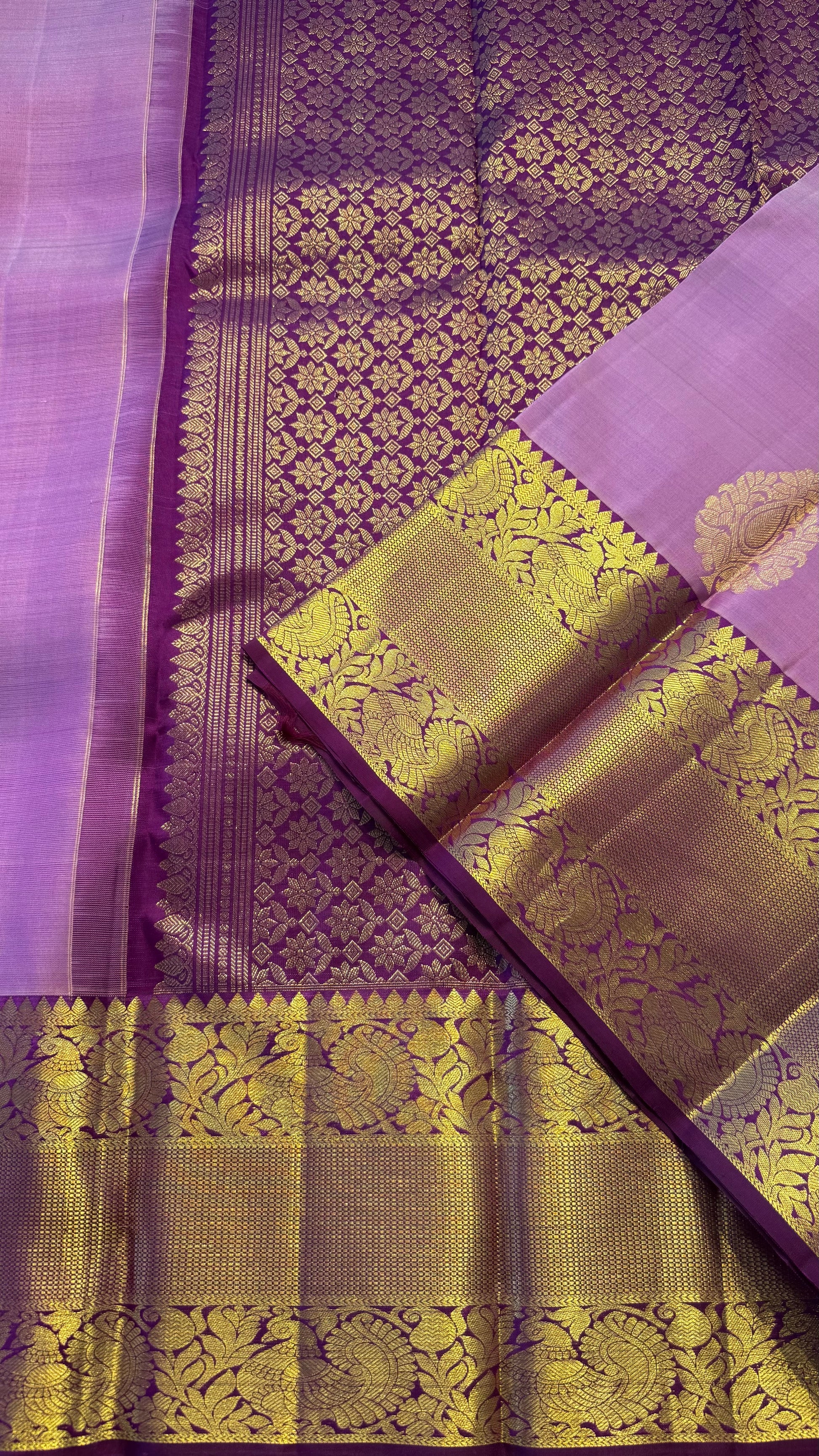 PASTEL LAVENDER WITH CONTRAST VADAMALLI PURPLE GOLD ZARI HANDLOOM KANCHIPURAM SILK SAREE (KSS380)