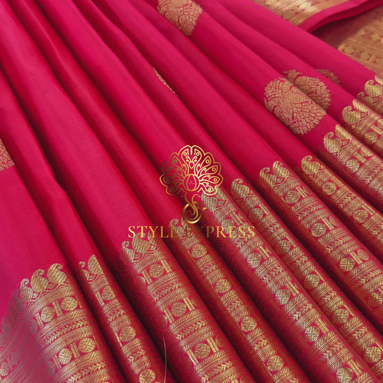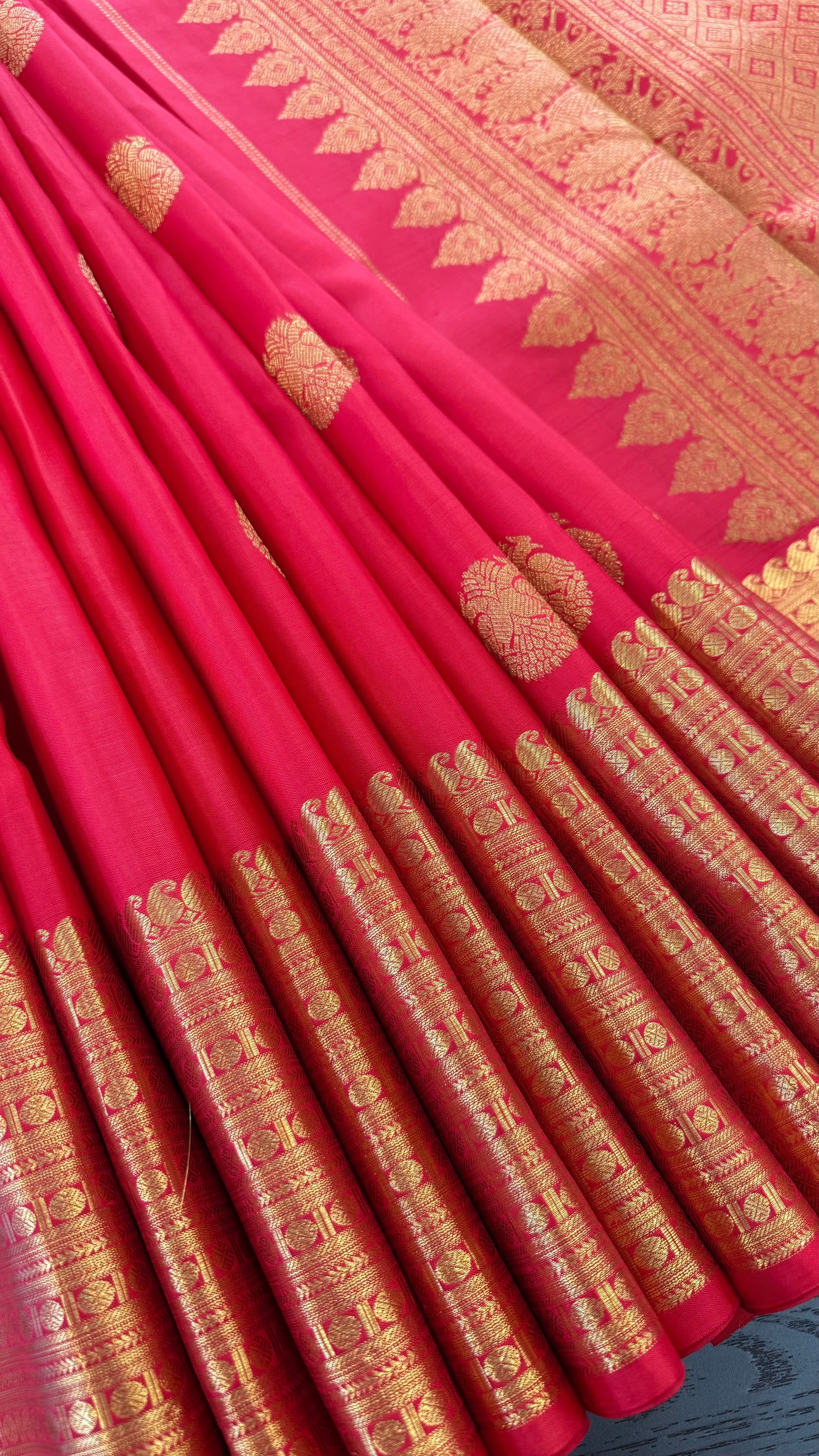 CHILI RED GOLD ZARI HANDLOOM KANICHIPURAM SILK SAREE (KSS173)