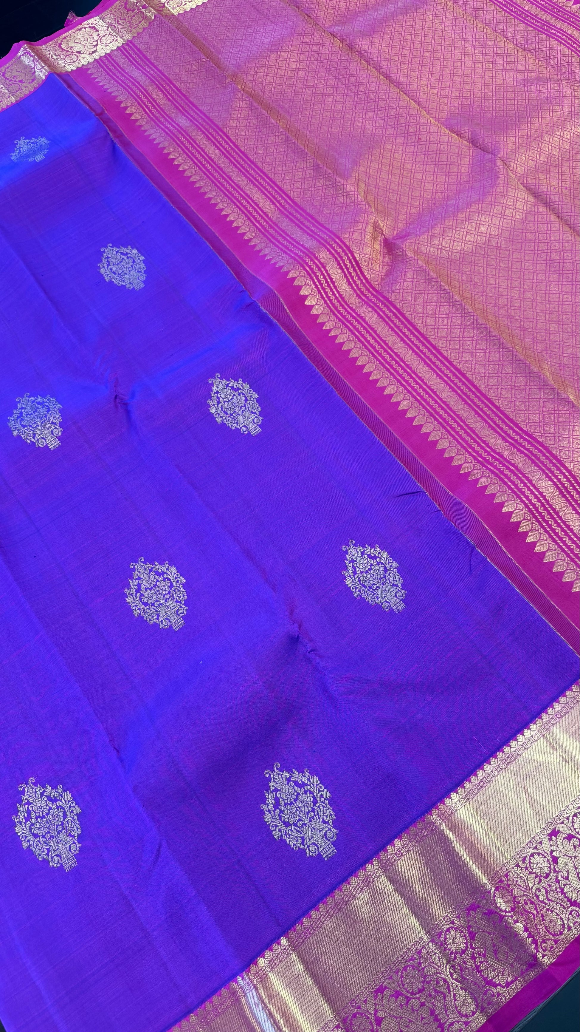 PURPLE WITH CONTRAST RANI PINK GOLD ZARI HANDLOOM KANCHIPURAM SILK SAREE (KSS384)