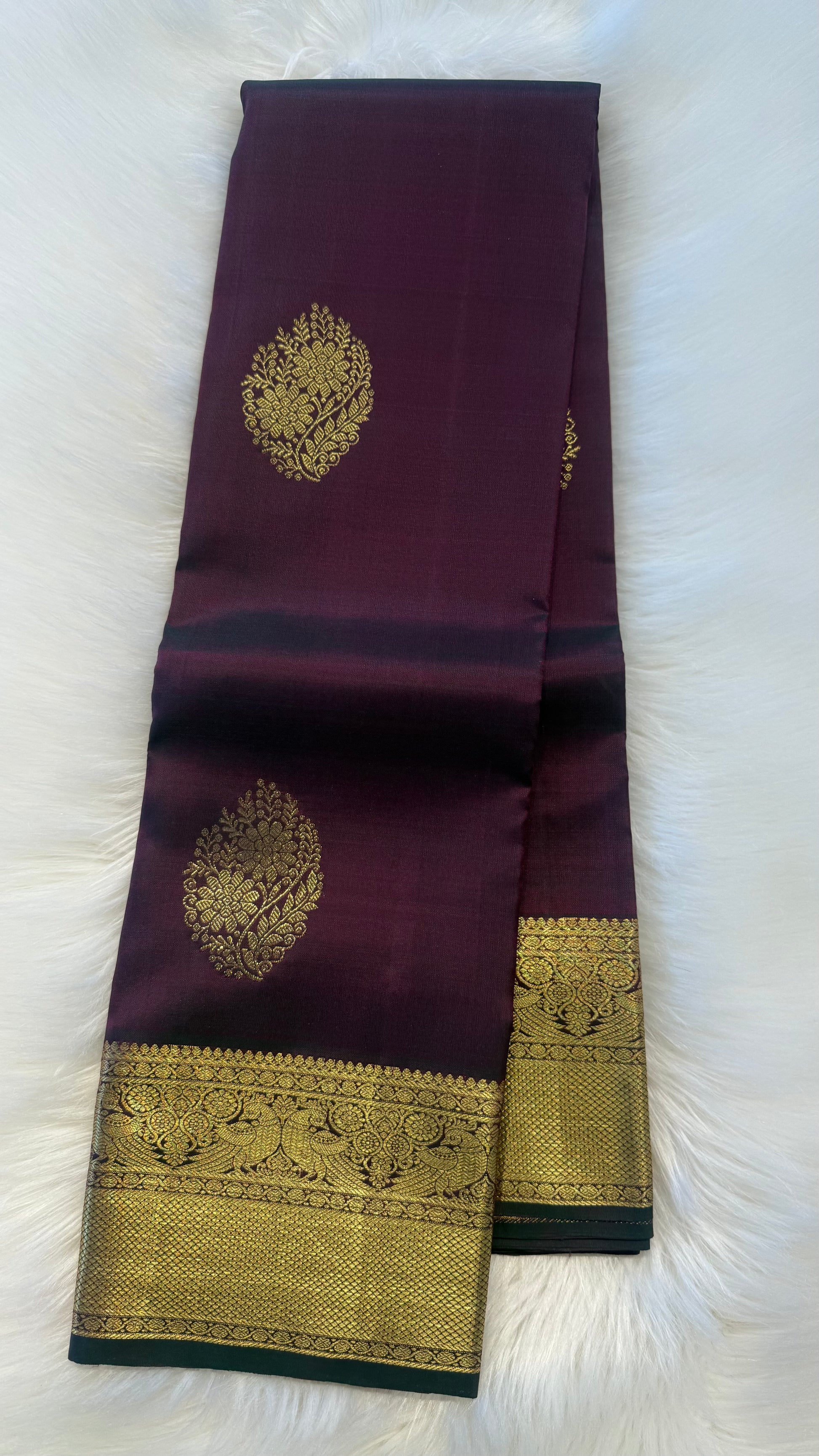 PURPLISH GREEN GOLD ZARI HANDLOOM KANCHIPURAM SILK SAREE (KSS420)