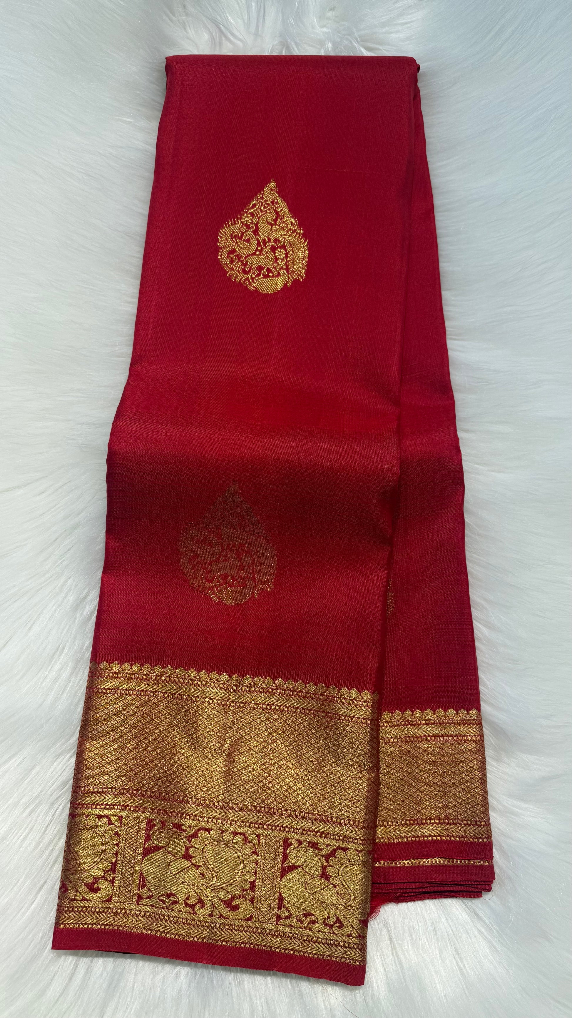 RED GOLD ZARI HANDLOOM KANCHIPURAM SILK SAREE (KSS387)