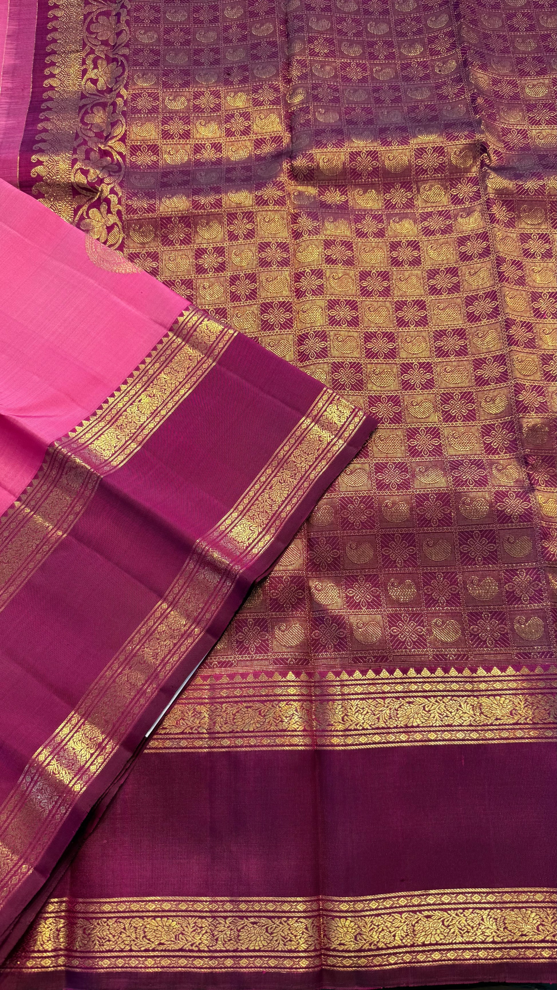 STRAWBERRY PINK WITH CONTRAST BURGUNDY KANCHIPURAM HANDLOOM SILK SAREE (KSS350)
