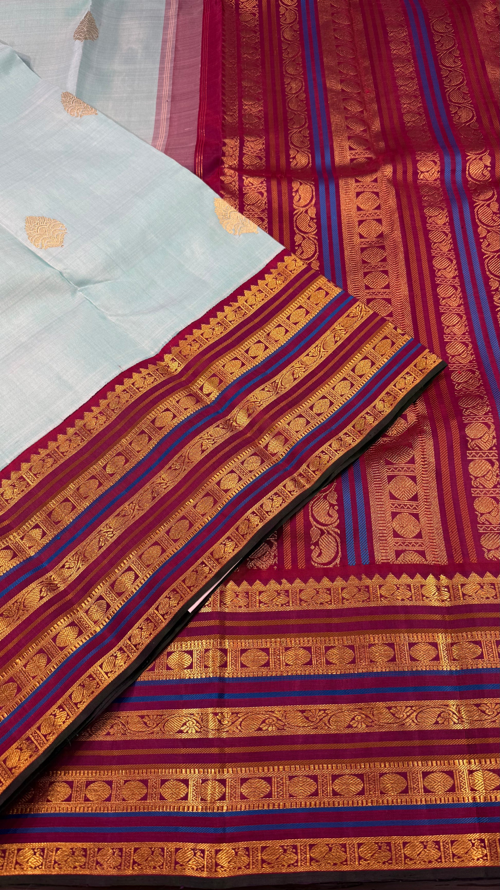 TURQUOISE BLUE WITH CONTRAST PURPLE GOLD ZARI HANDLOOM KANCHIPURAM SILK SAREE (KSS299)