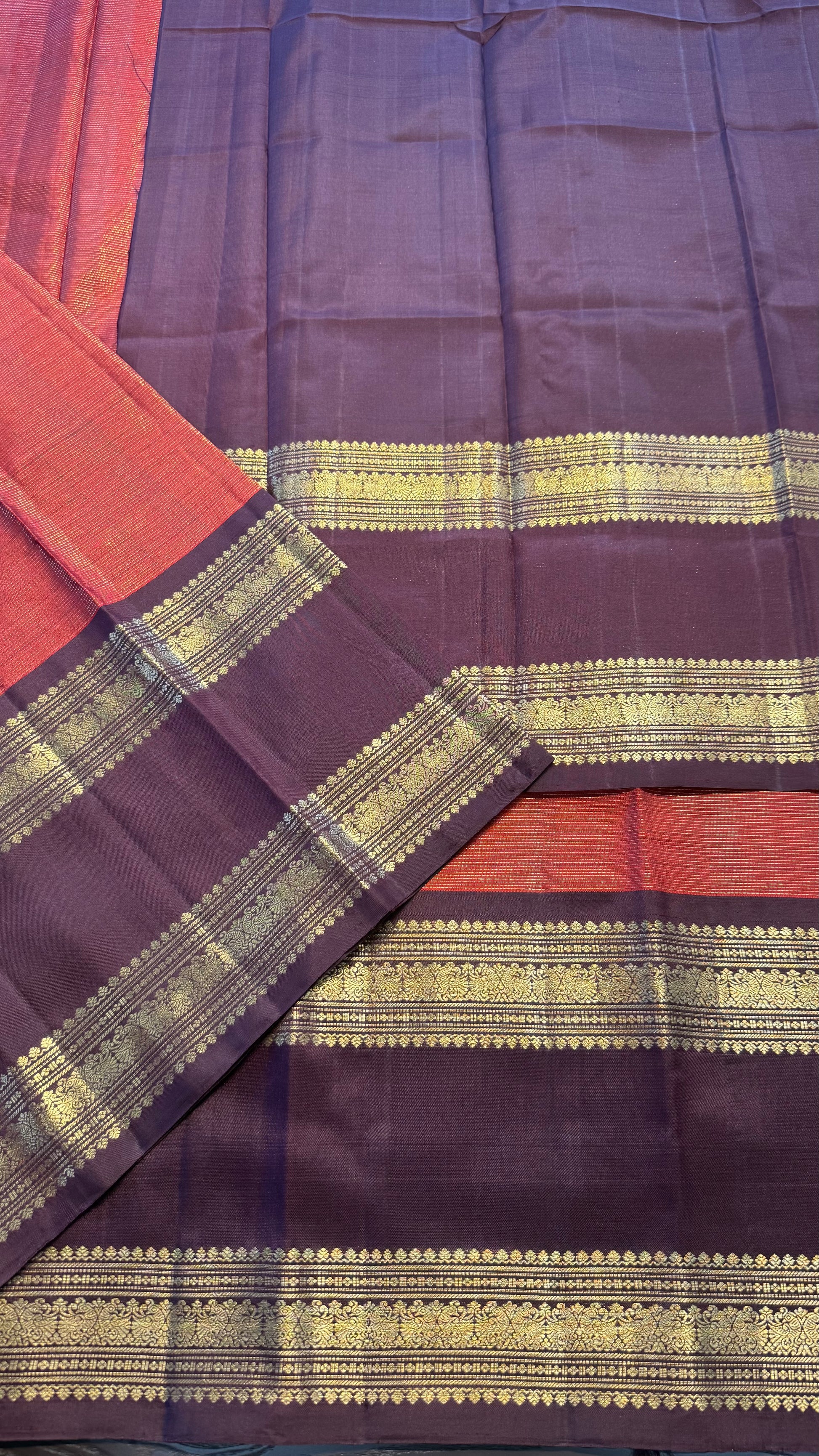 VAIRA OOSI RUST WITH CONTRAST DARK BROWN BORDER HANDLOOM KANCHIPURAM SILK SAREE (KSS449)